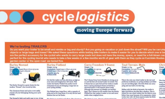 The experts at the Danish Cyclists Federation organized and oversaw, on behalf of the EU project, Cyclelogistics and the European Cyclists’ Federation, a thorough test of load trailers. The tests were carried out over a period of five days by five experienced persons or small companies who bike daily and are trained to review cycling products. They were simply told to let the item become a regular part of their daily routine. They then gave each trailer a score out of five stars with five stars being the best