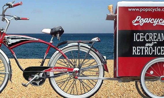 Kevin Walker has his own business. He delivers home made ice cream on a Schwinn Beach cruiser and a Carry Freedom Trailer. He has made a business out of this clever idea and can be seen at many different events in England. See his news feature here: